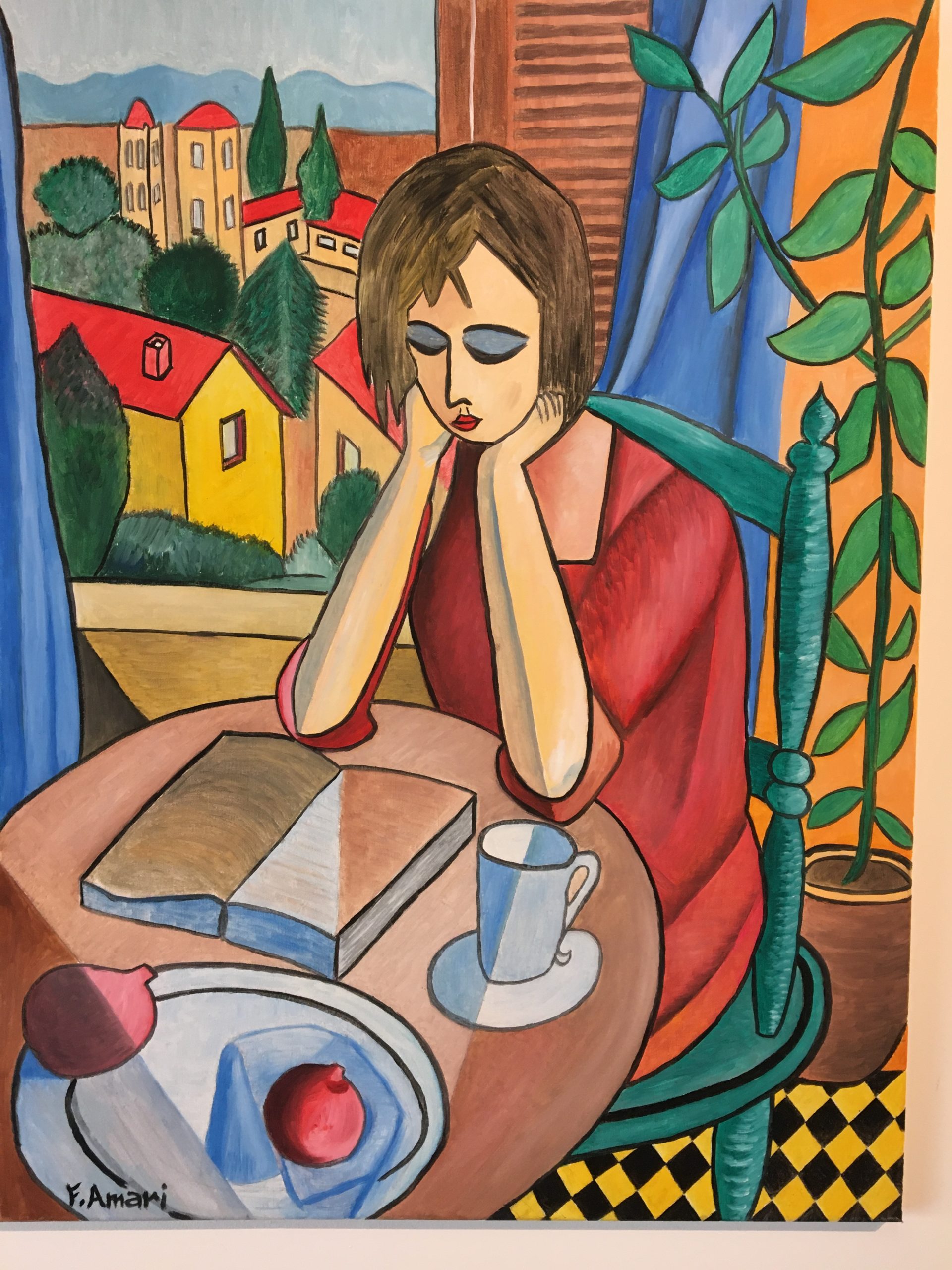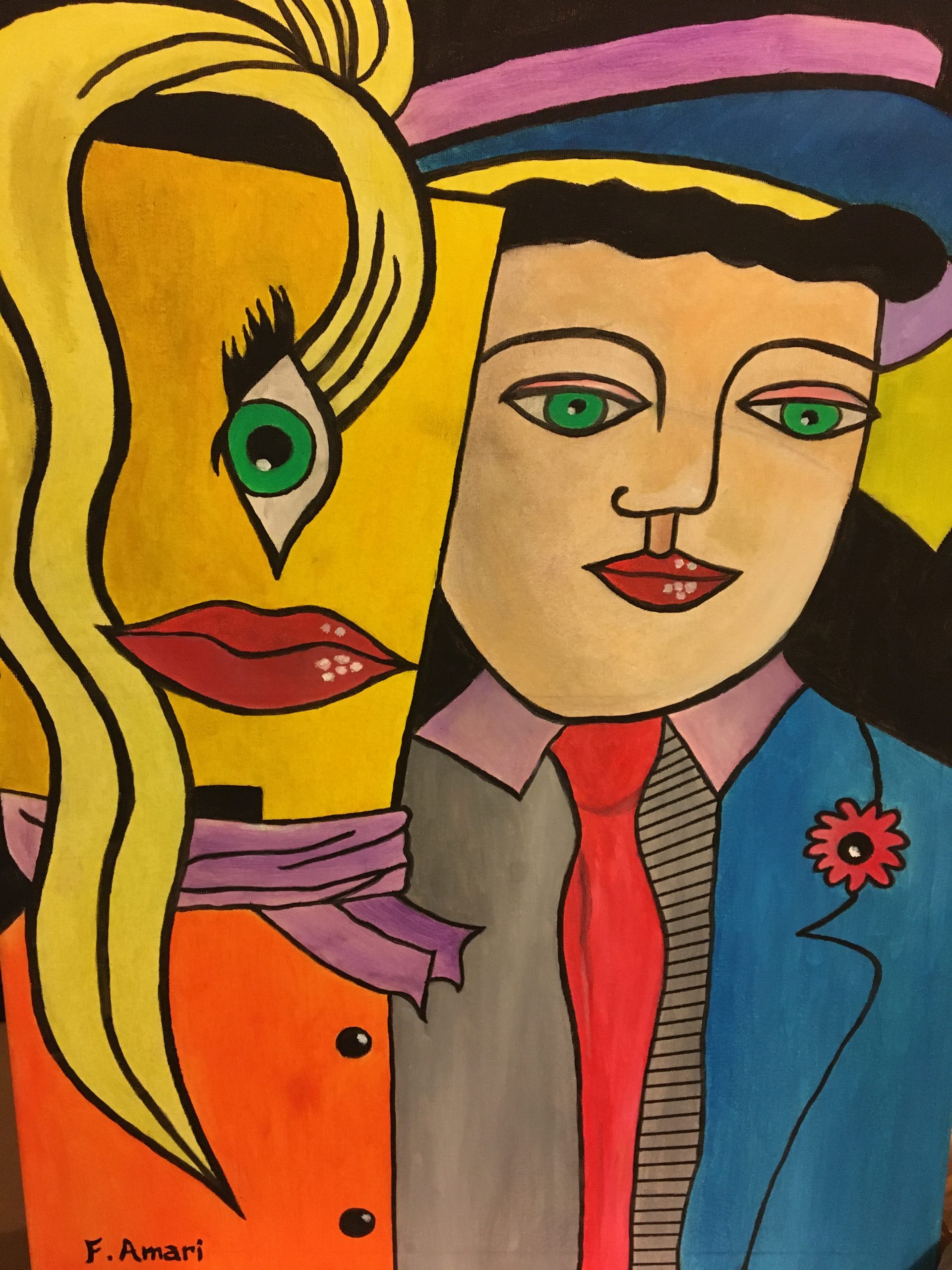 « Je m’appelle Amari Farid Arsène, je suis né à Lille, j’ai travaillé dans plusieurs domaines notamment la comptabilité et l’électricité et ce dans trois pays différents dont la France où je me suis installé depuis près de 20 ans et dans la même ville qui est Bergerac. Actuellement, je travaille pour question de culture dans le maraîchage. Sinon en ce qui concerne mon parcours artistique, il est très simple, j’ai toujours eu 2 passions, la musique et la peinture, durant mon temps libre, il m’arrive des fois de peindre et je m’inspire la plus part du temps de l’impressionnisme et du cubisme. J’ai reçu une première reconnaissance de la ville de Bergerac en 2020, où je suis arrivé premier d’un concours qu’ils ont appelé « les œuvres de confinements ». J’ai exposé deux fois à Bergerac à la mairie et au centre culturel et deux ou trois fois ailleurs. Je joins à cette petite explication le titre que la ville de Bergerac m’a fourni. Merci et à bientôt. »